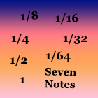 For instance, The whole note, the half note, the quarter note, the eighth note, the sixteenth note, the thirty second note, and the sixty fourth note can also be named and/or identify as follow: 1, 1/2, 1/4, 1/8, 1/16, 1/32, 1/64. This is a practical way to expand the student's knowledge of the connection between different academic contents such as Music, Math, English, Geography, Social studies etc..