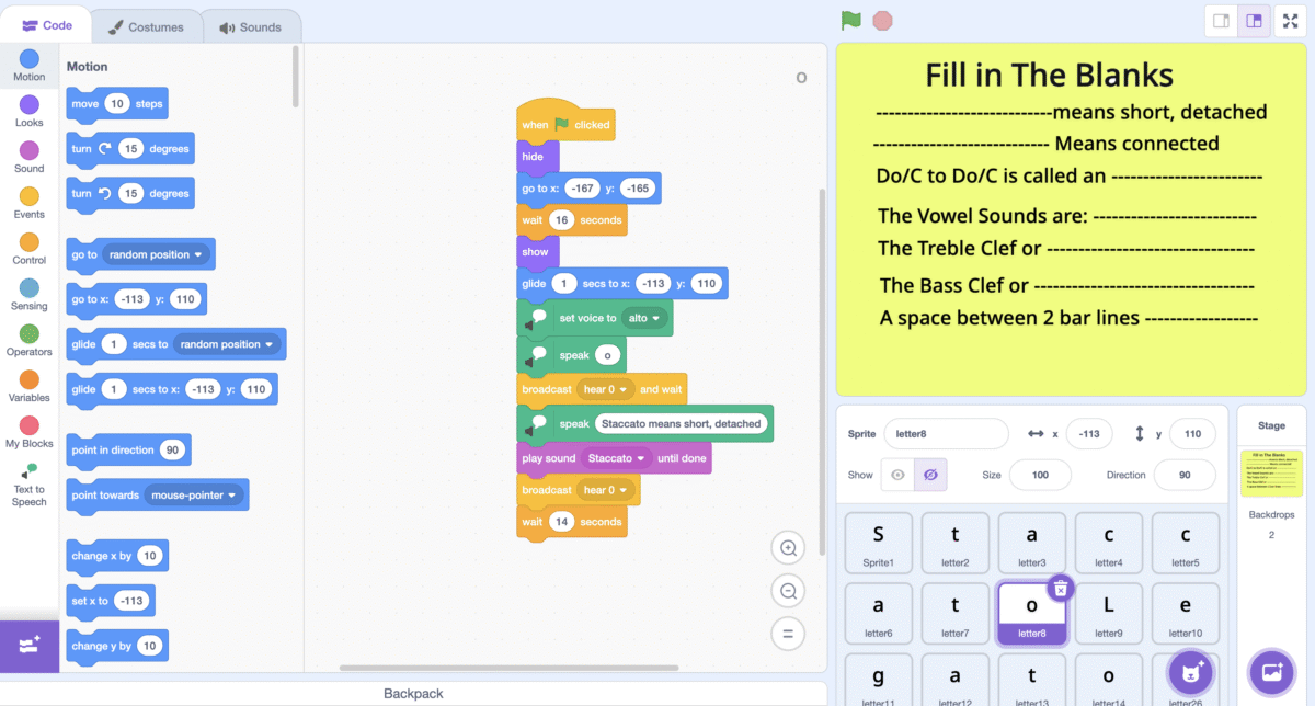 Musicalway connects musical contents with scratch algorithmic blocks to enhance learners’ mastery of musicalway skills essential to building individual musicianship, through the use of computational thinling components.
